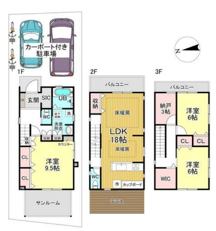 駐車場付き 床暖房付き システムキッチン 浴室乾燥機 2台以上駐車可