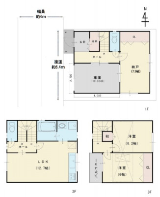 • 西側 幅員約4 m の公道 に 約6.4 m 接面