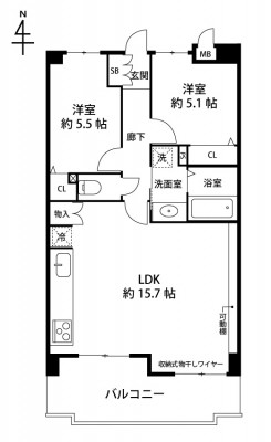 2. 南向きバルコニーにつき陽当り良好