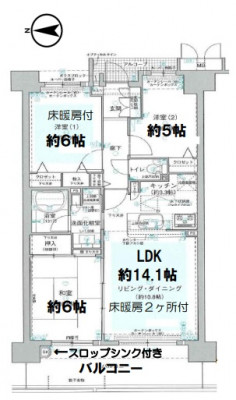 - LD・洋室約6帖に床暖房あり