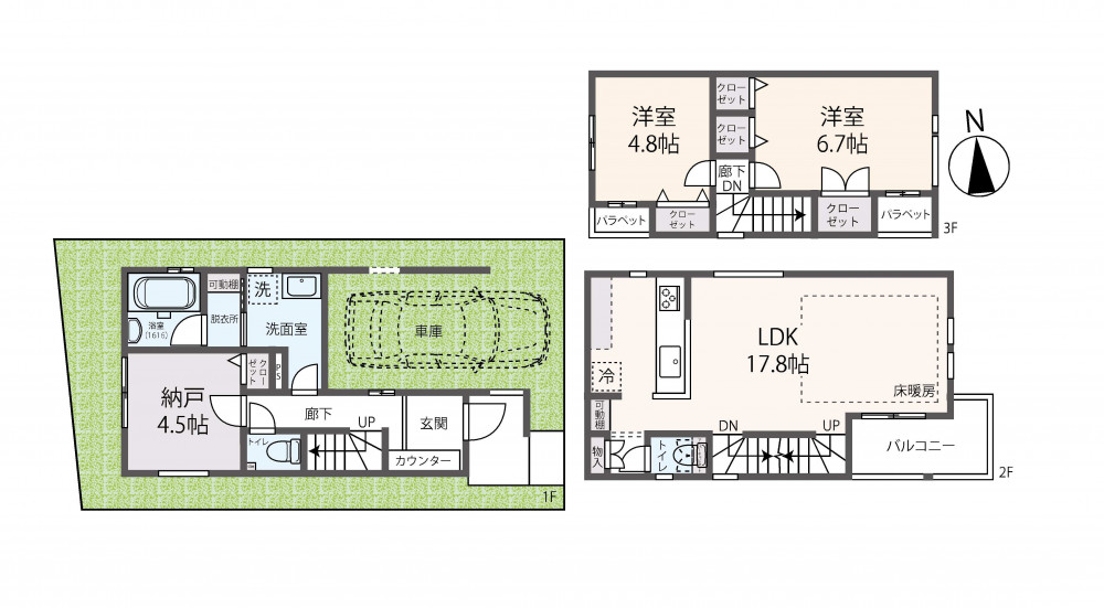 駐車場付き 床暖房付き システムキッチン 浴室乾燥機 メルディアDC