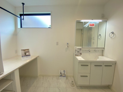 3. ゆったり広々な洗面室には使い勝手の良いカウンター