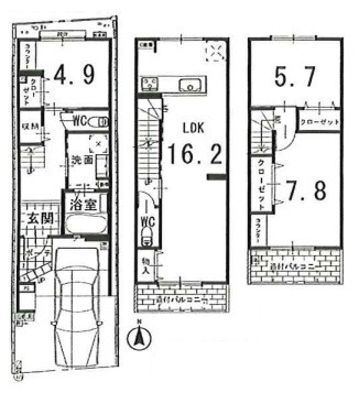 - ※2階造付バルコニー:約3.78㎡、3階造付バルコニー:約4.64㎡