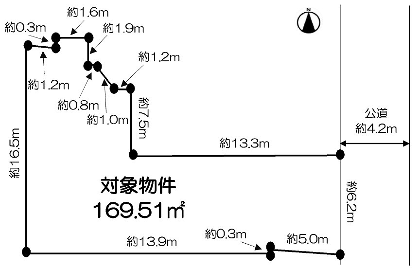 - 東側 幅員約4.2 m の公道 に 約6.2 m 接面