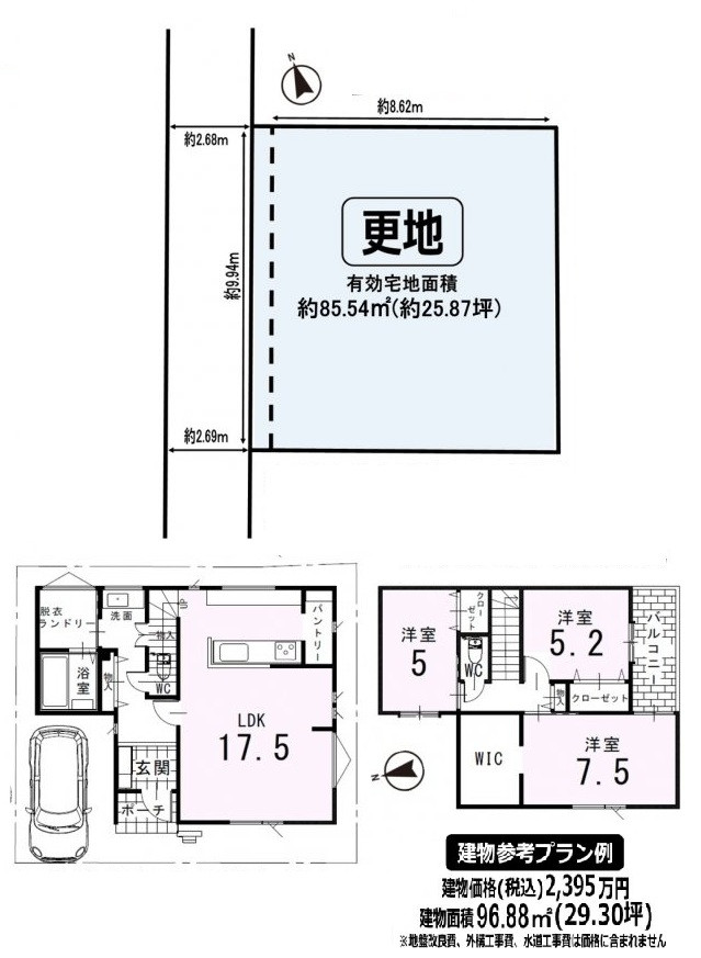 ※実測面積:約99.75㎡ ※有効宅地面積:約88.54㎡